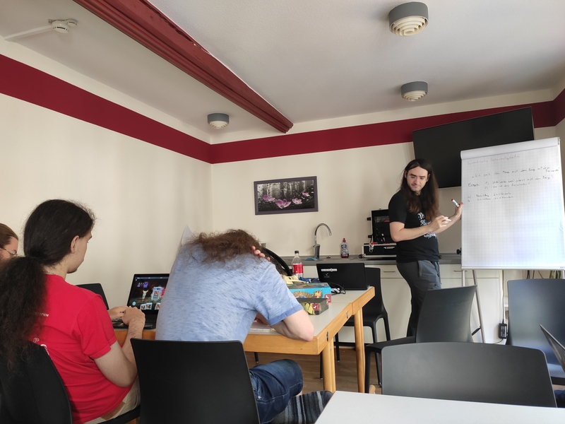 Zum Einstieg stellte Johannes Loos „Competitive Programming & Python für Mathe nutzen“ für die jüngeren Teilnehmer vor, parallel dazu hielt Vincent Fischer einen Vortrag über „Kontextfreie Sprachen“. Danach referierte Tobias Hirsch über „Knotentheorie“.