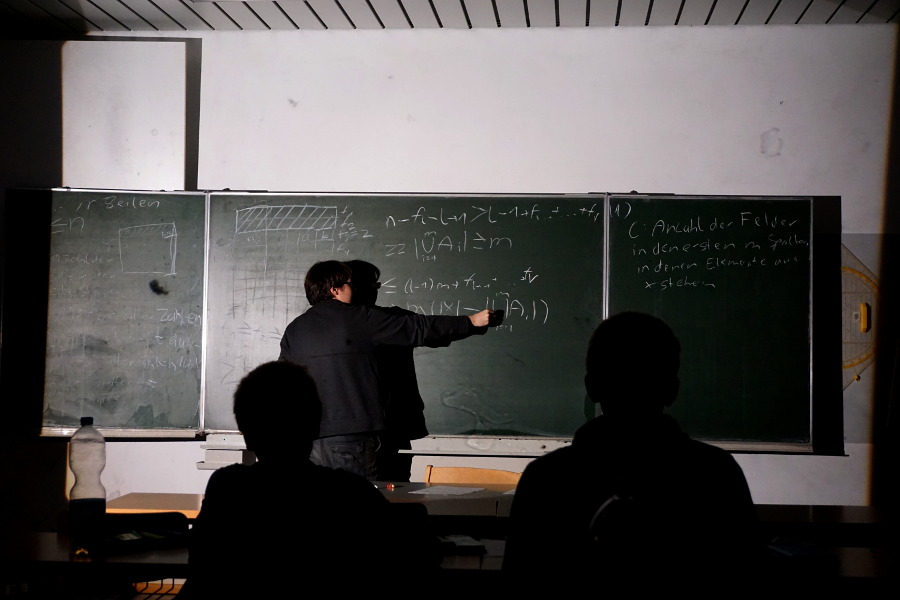 Abgerundet wurde das mathematische Programm am Samstag mit einem Vortrag von OStR Matthias Moßburger über Lie-Algebren und die Frage, ob es beliebig-dimensionale Zahlenmengen gibt, auf denen die meisten gewöhnlichen Rechenregeln (die der Schiefkörper) gelten. Zur gleichen Zeit trug Daniel Kogan, diesmal für die älteren Teilnehmer, über Computer Vision vor. Das Erkennen von Gesichtern und anderen Objekten oder das Umrechnen von 2D- in 3D-Film ist bis heute ein brandaktuelles Thema der angewandten, aber auch der theoretischen Forschung.