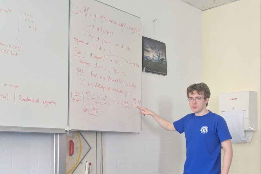Am Samstag behandelte Ferdinand Wagner in seinem Vortrag die Gleichung a/(b+c) + b/(c+a) + c/(a+b) = N. Für welche N gibt es eine Lösung (a,b,c), wobei N, a, b und c natürlich sind? – Für ungerade Zahlen gibt es keine solche Lösung. Für kleine gerade Zahlen, beispielsweise die 4, haben die einzelnen Komponenten der kleinsten Lösung schon dutzende Stellen. Danach spielte Jana Lemke mit ihren Zuhörern das Zahlenwahlspiel. Jeder Mitspieler wählt eine Zahl zwischen 0 und 100. Wer am nächsten bei zwei Drittel des Durchschnitts liegt, hat gewonnen. Dabei kommt es darauf an, wie viele Schritte weiter die Mitspieler denken. An diesem und weiteren Problemen legte Jana das k-level-thinking dar, welches in der Realität oft Anwendung findet. Am Nachmittag erklärte Martin Drees das Travelling Salesman Problem: Für eine gegebene Anzahl von Orten ist der kürzeste Weg zu finden, auf dem alle diese Orte passiert werden.